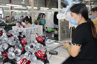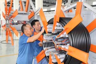 位于诏安工业园区的福建新胜达新材料科技有限公司生产车间,工人正在盘管。诏安县委宣传部供图
